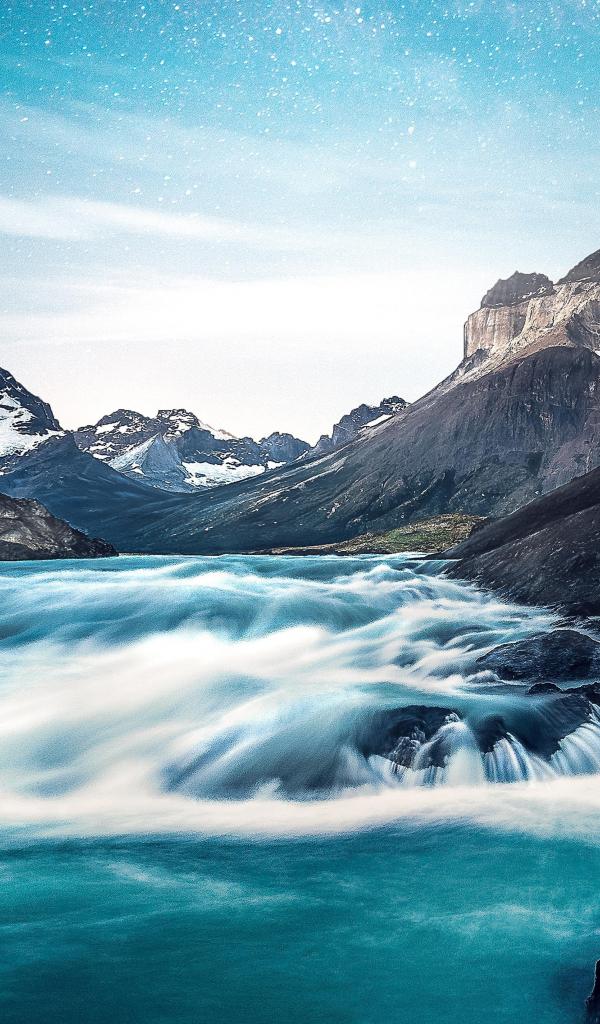Обои Быстрая река среди каменных горных берегов