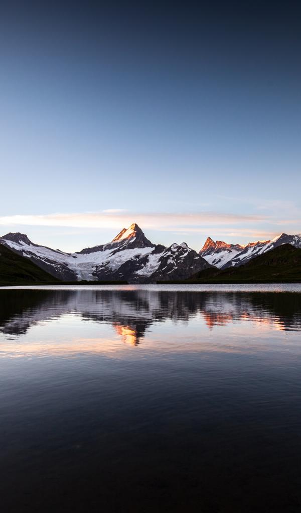 Обои Спокойное горное озеро у заснеженных гор
