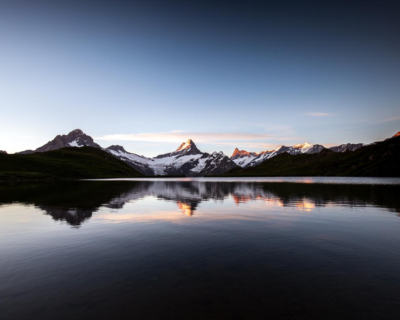 Обои Спокойное горное озеро у заснеженных гор