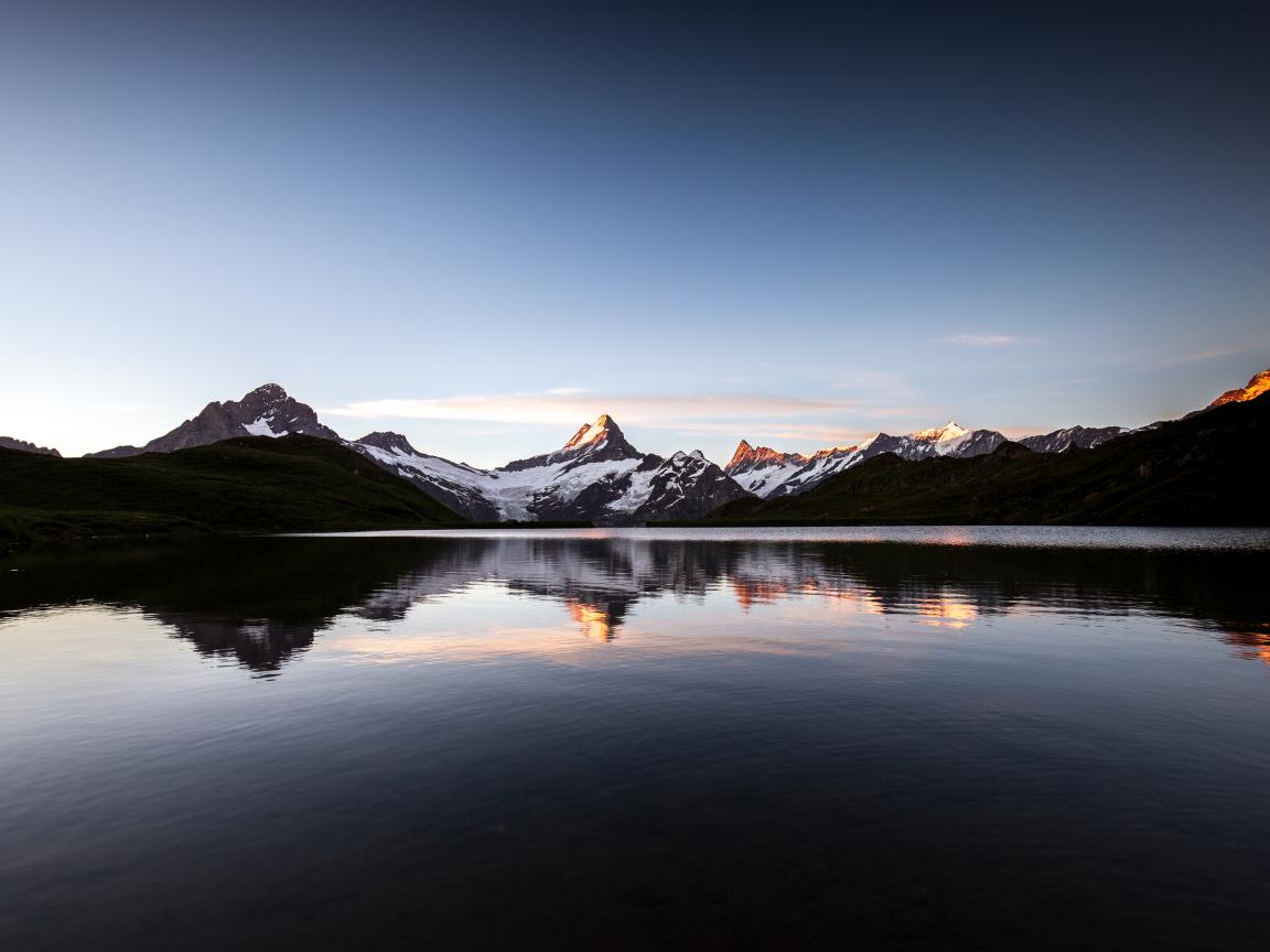 Обои Спокойное горное озеро у заснеженных гор