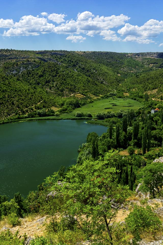 Обои Озеро в живописном зеленом парке под голубым небом