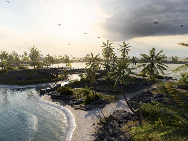 Обои Зеленые пальмы на тропическом пляже в океане