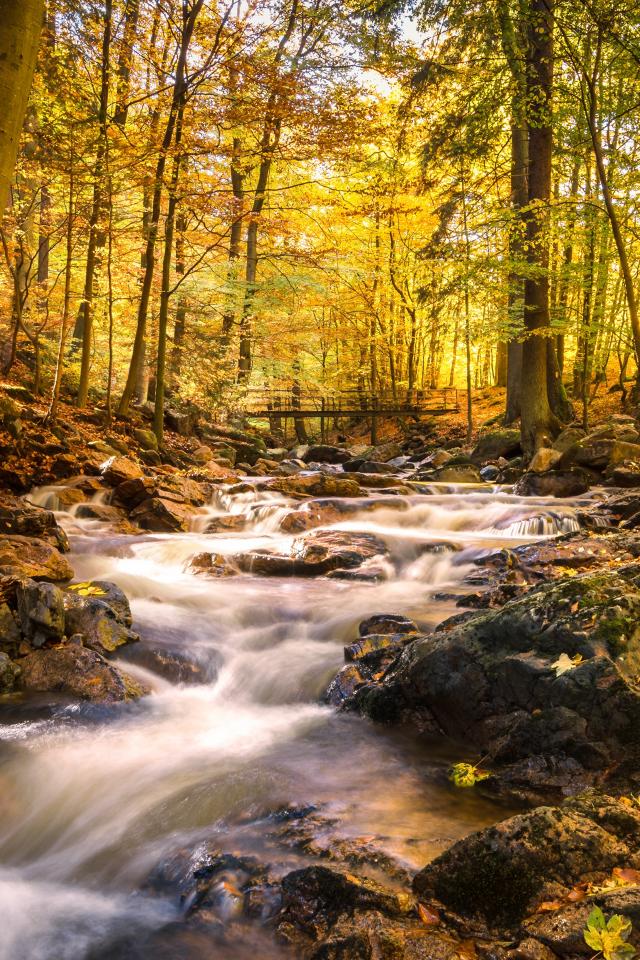 Обои Быстрая вода ручья стекает по камням в осеннем лесу