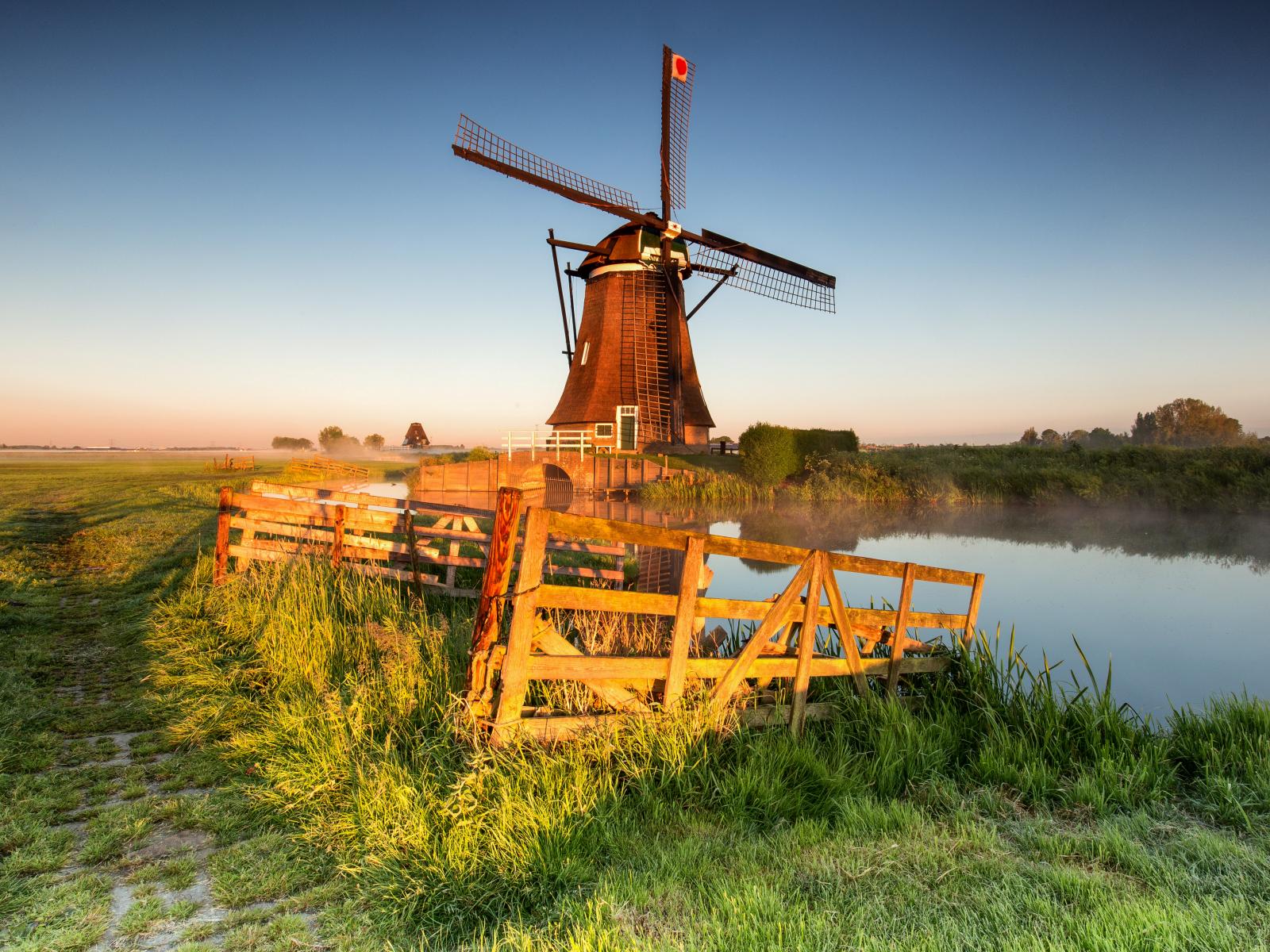 Обои Старая мельница на берегу озера на ферме