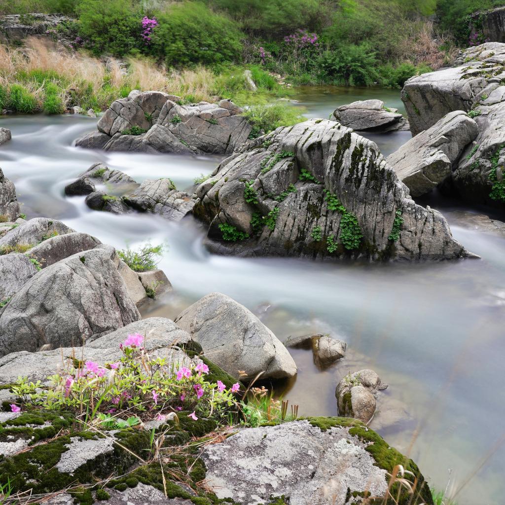 Обои Валуны в бурной горной реке