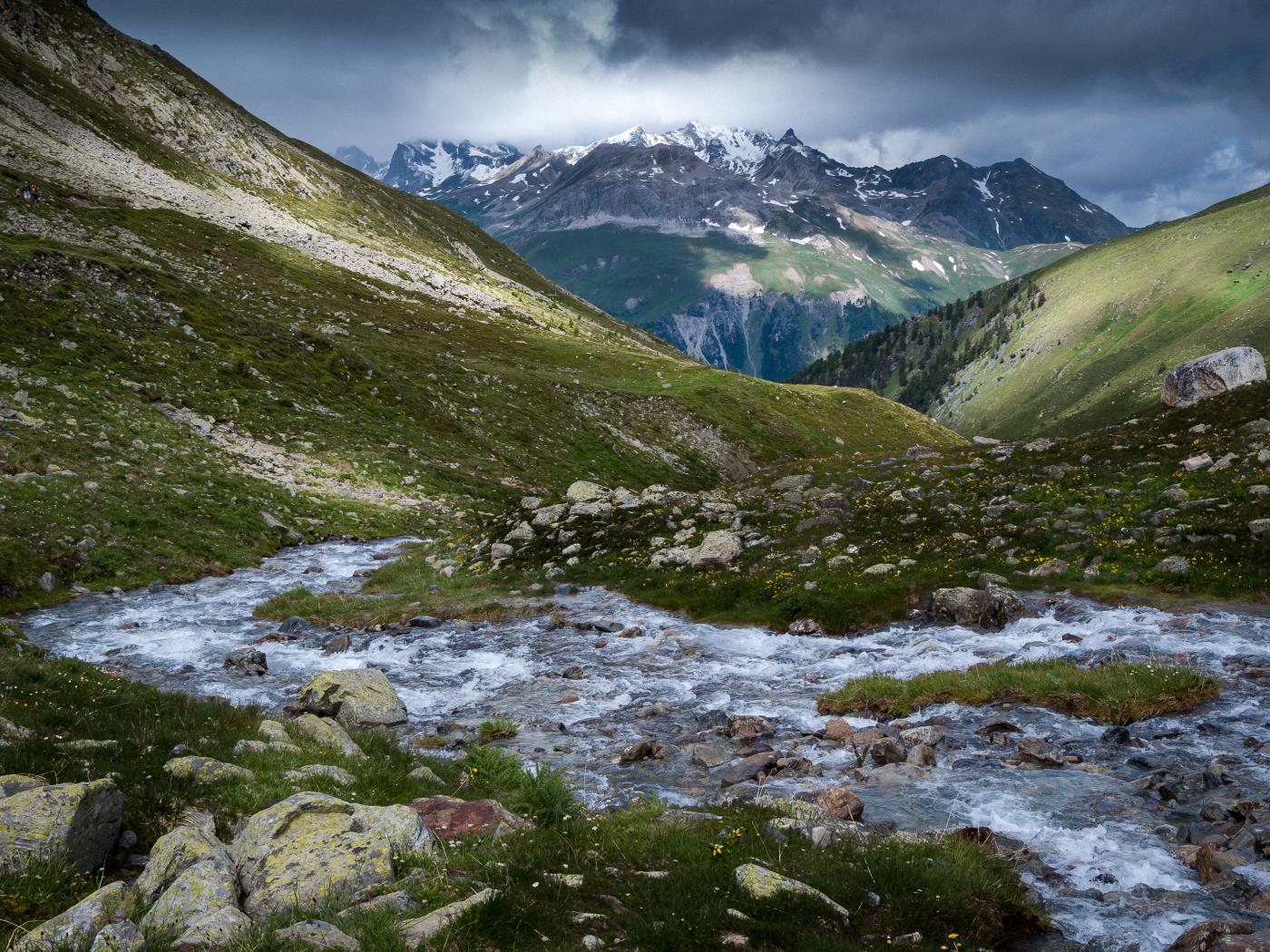 Обои Быстрая горная река протекает между горами