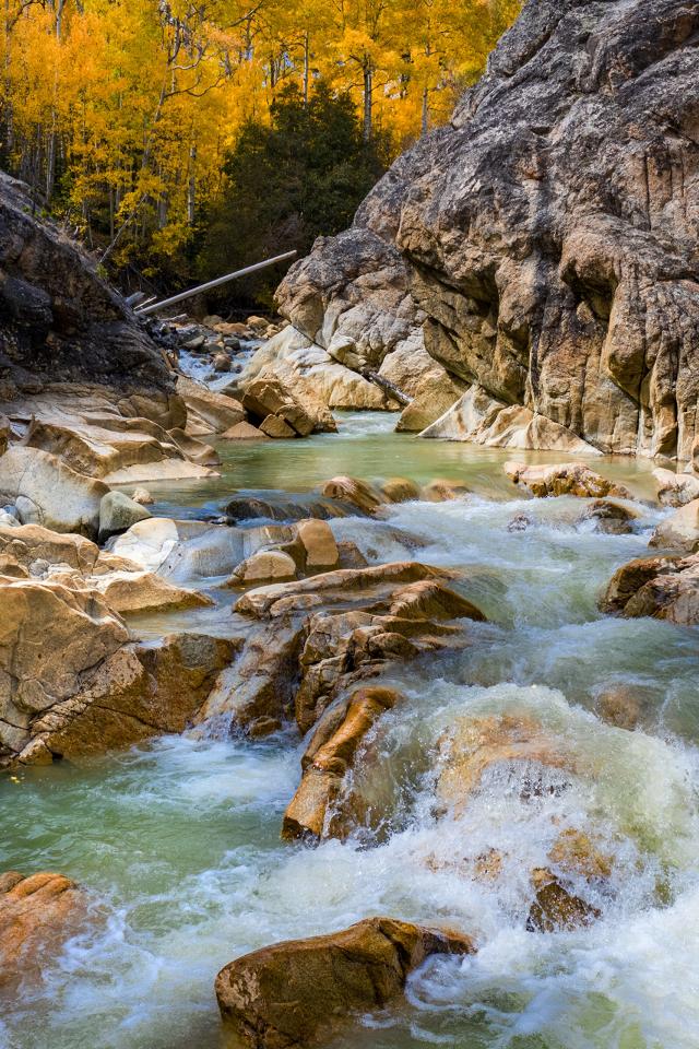 Обои Быстрая холодная горная река бежит по камням