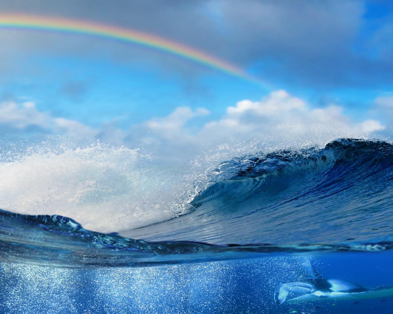 Обои Радуга над морскими волнами