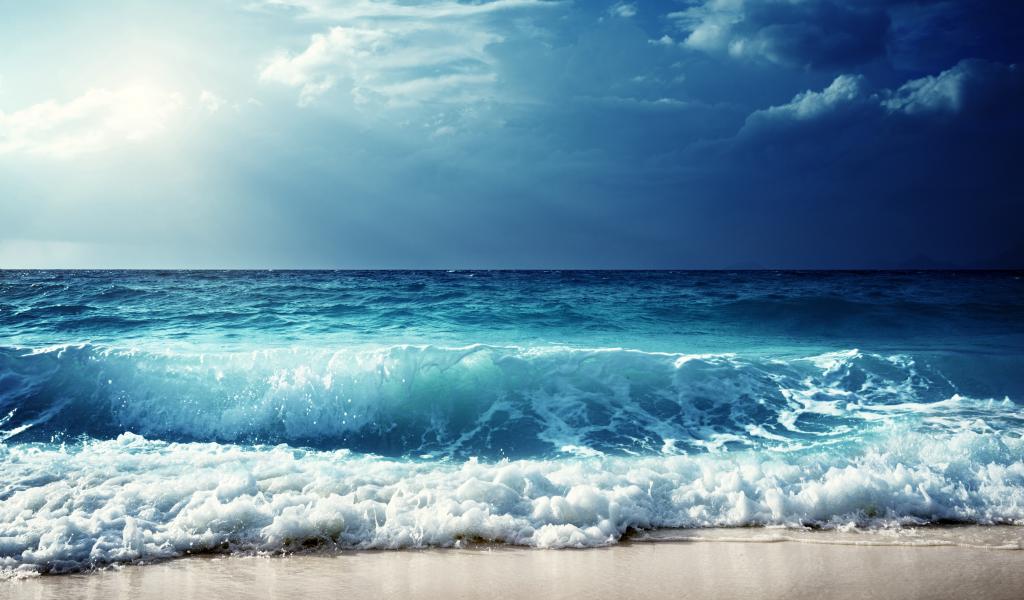 Обои Бушующие морские волны на фоне голубого неба