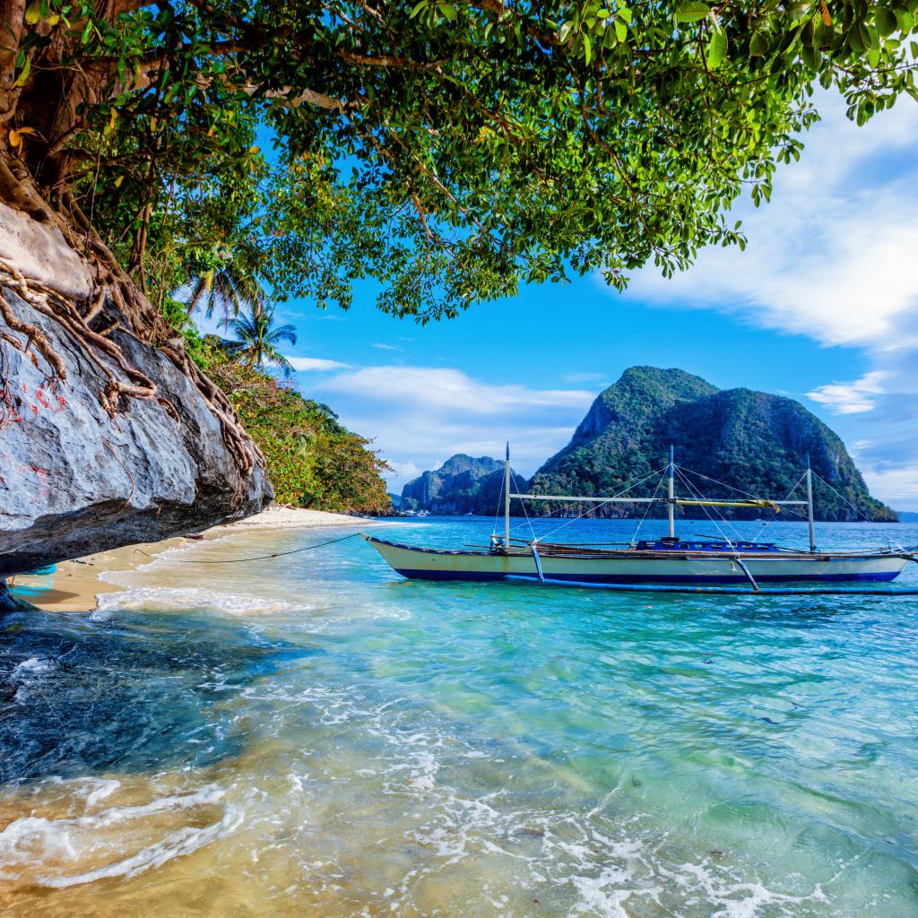 Обои Лодка на морском побережье в тропиках, Филиппины