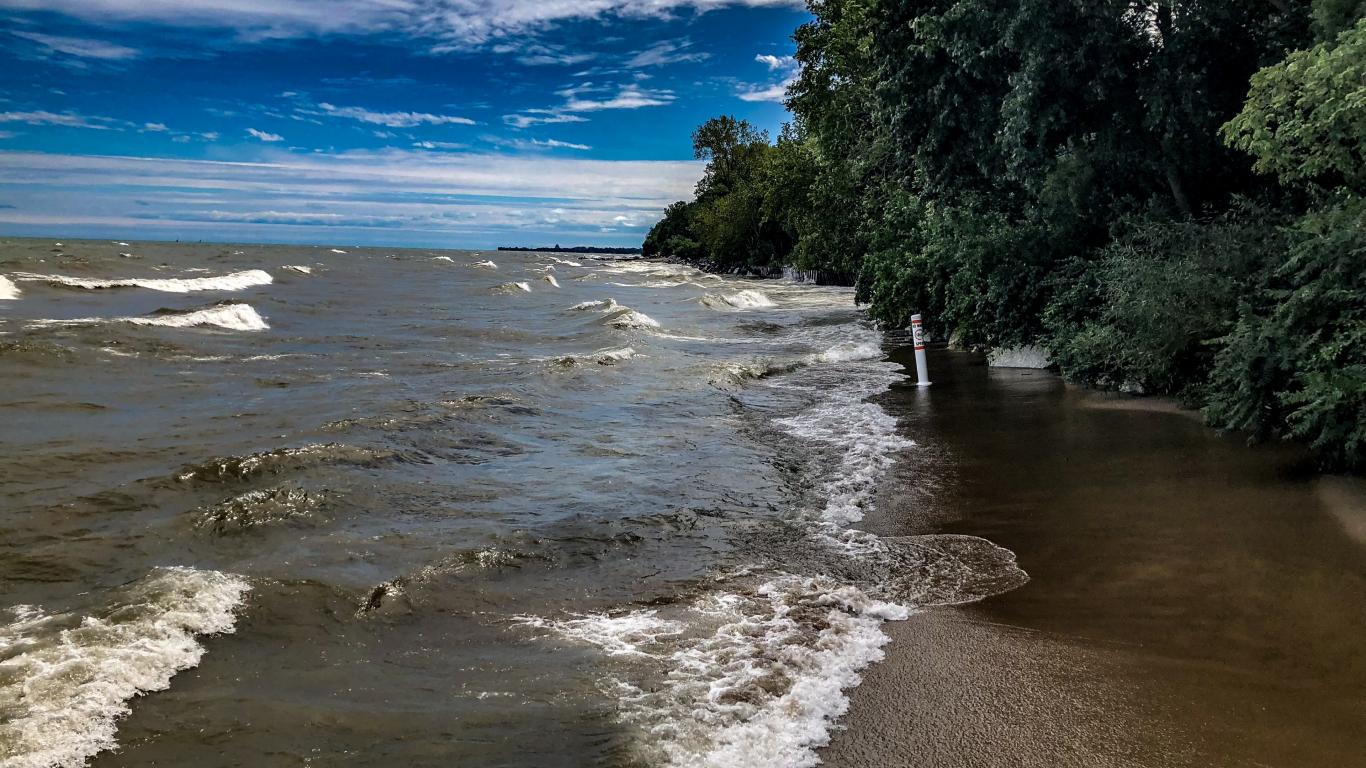 Обои Морские волны омывают берег под голубым небом