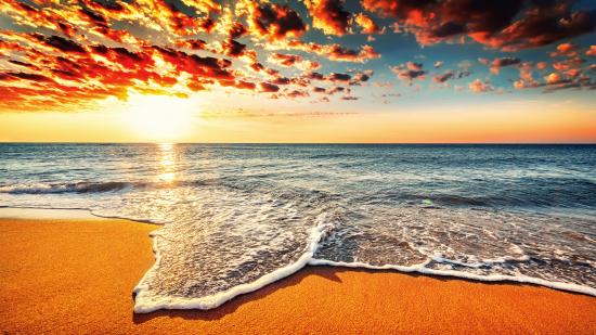 Обои Белая морская пена на оранжевом песке под красивым небом