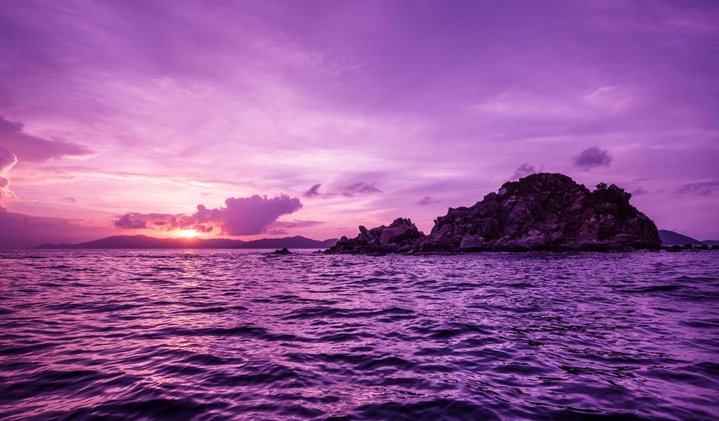 Обои Вода в море на фоне фиолетового заката