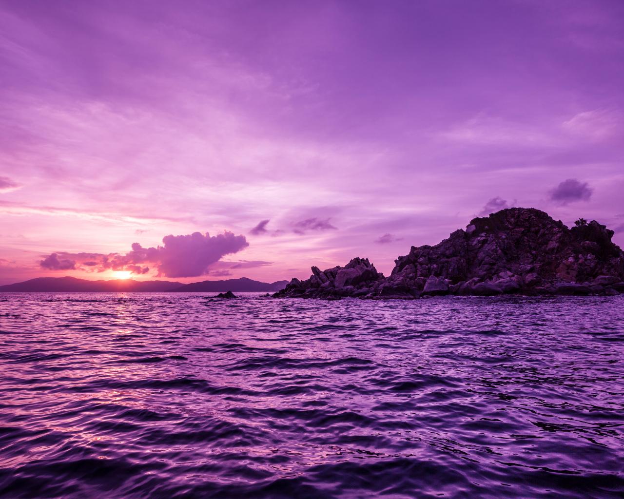 Обои Вода в море на фоне фиолетового заката