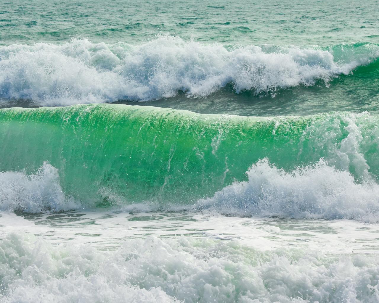 Обои Бушующие белые волны на фоне низкий облаков в небе