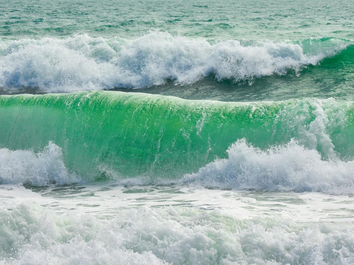 Обои Бушующие белые волны на фоне низкий облаков в небе