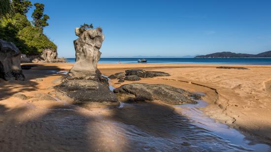 Обои Большие камни на берегу на мокром песке у моря летом