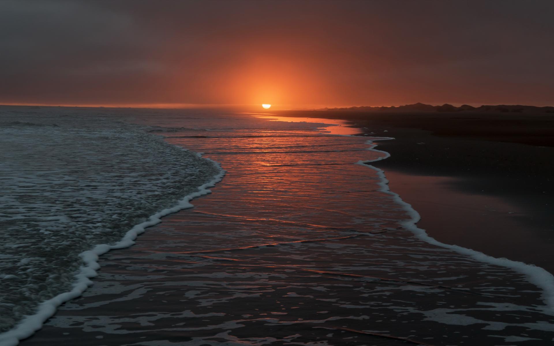 Обои Тихие волны на берегу моря на закате