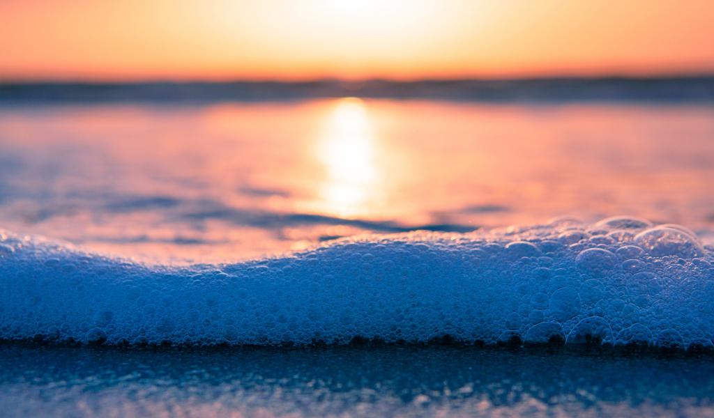 Обои Белая морская пена с пузырям на закате