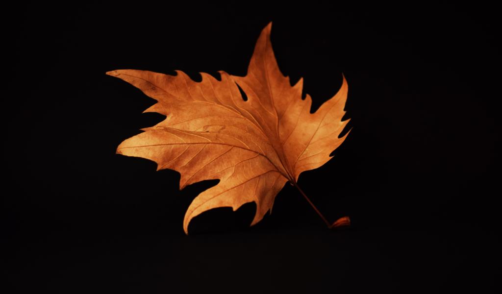 Обои Желтый осенний лист на черном фоне