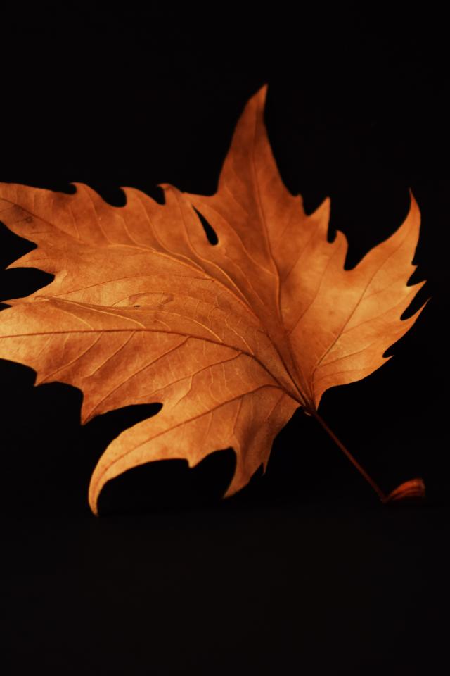 Обои Желтый осенний лист на черном фоне