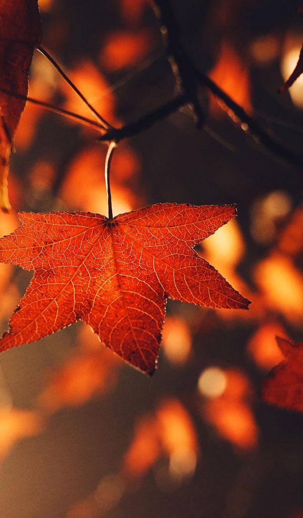 Обои Яркие оранжевые осенние листья в лучах солнца