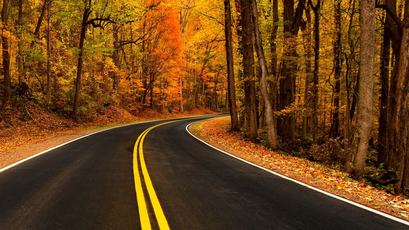 Обои Ровная дорога в осеннем лесу