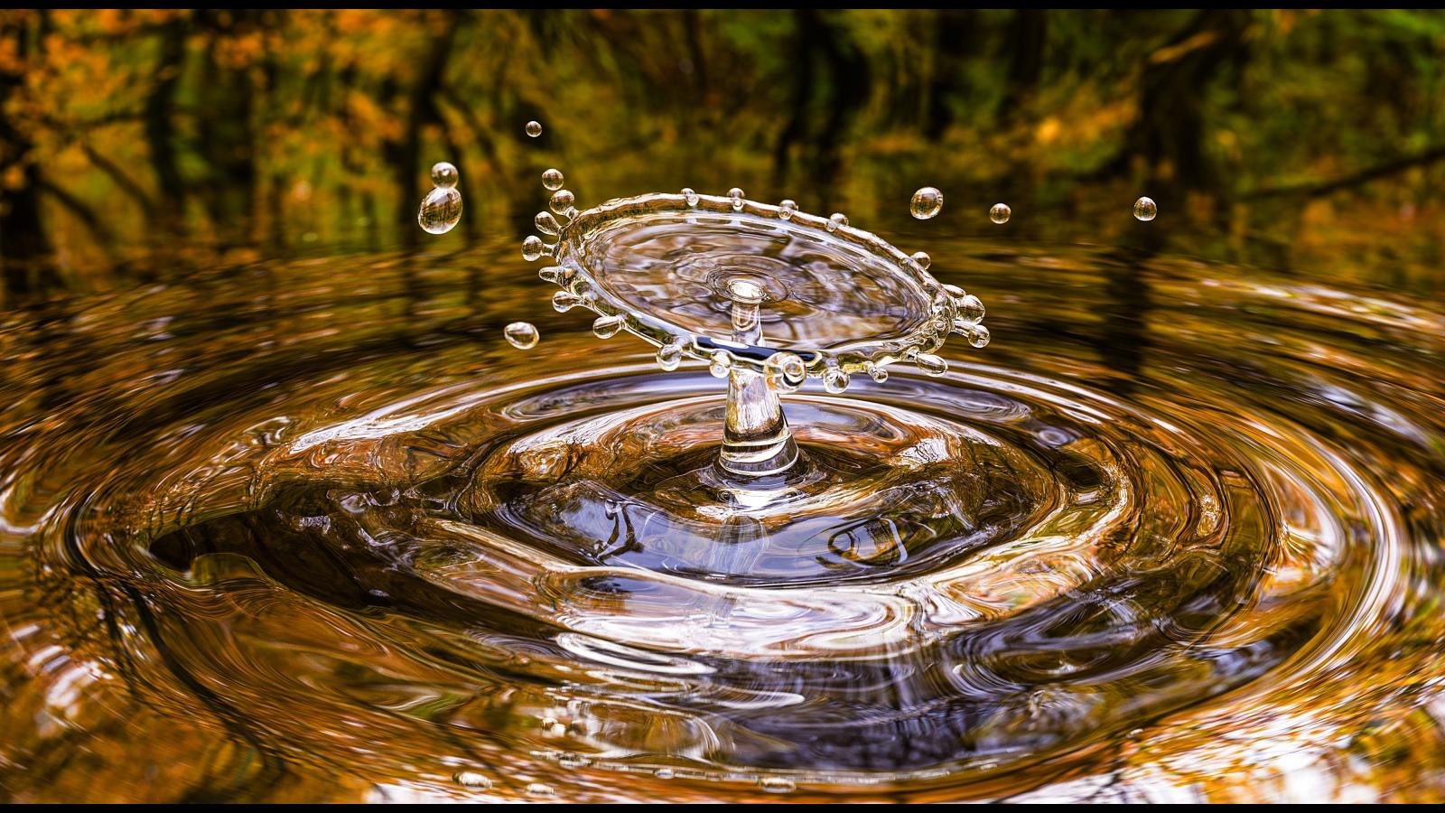 Обои Круги на воде с большой каплей