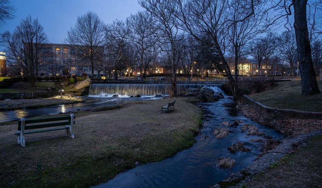 Обои Водопад на реке в холодном осеннем парке