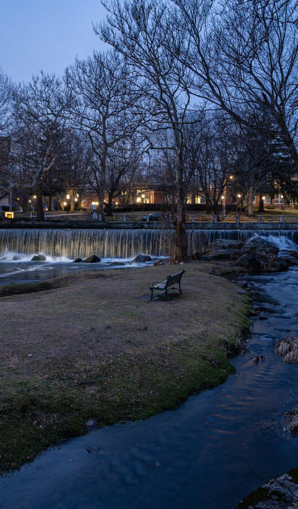 Обои Водопад на реке в холодном осеннем парке