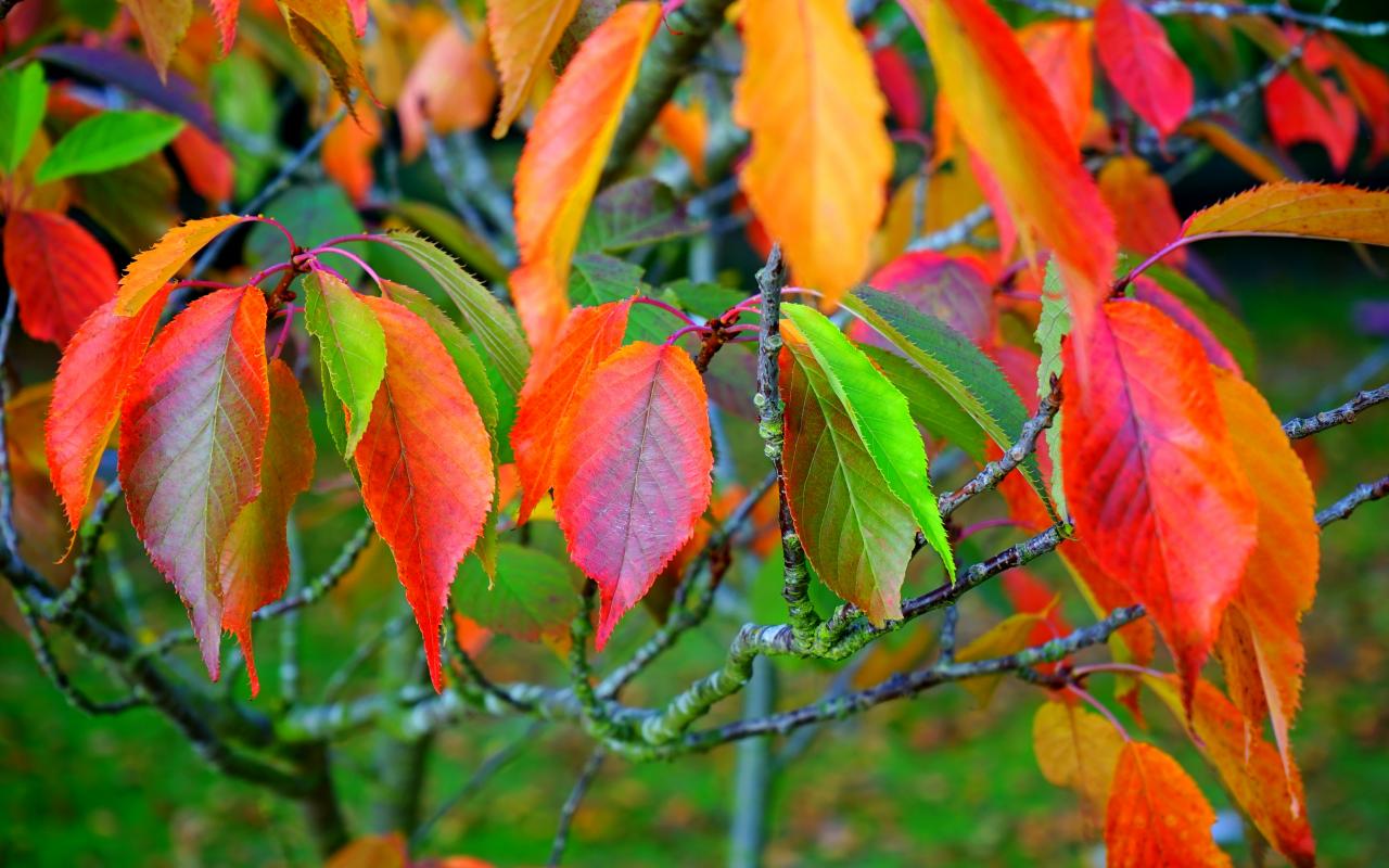 Обои Разноцветные листья на ветках дерева осенью