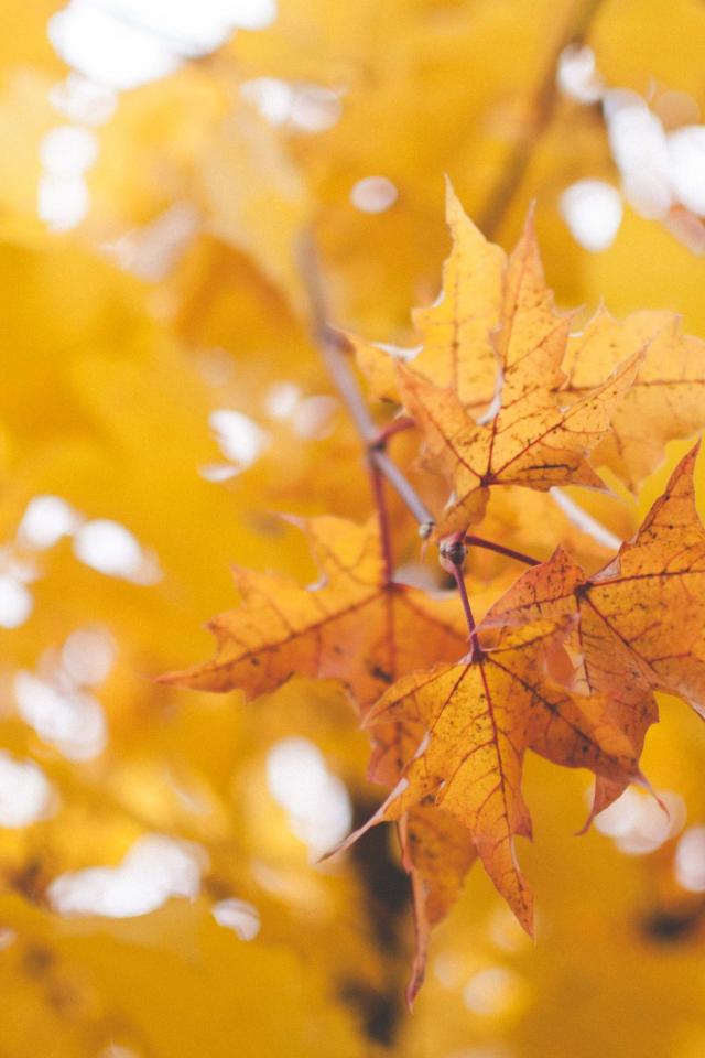 Обои Сухие кленовые листья на дереве осенью
