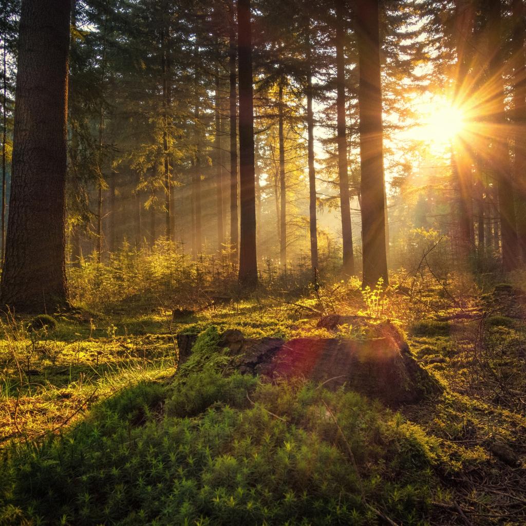 Обои Яркое осеннее солнце пробивается сквозь деревья