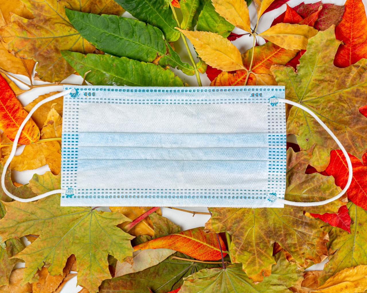 Обои Медицинская маска от коронавируса лежит на осенних листьях