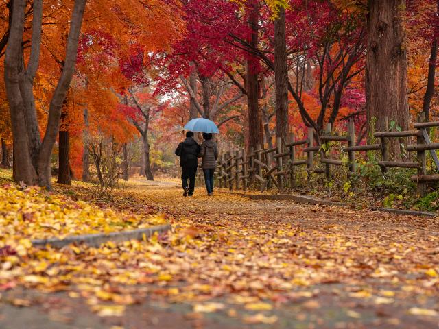 Обои Прогулка по красивому осеннему парку с опавшей листвой
