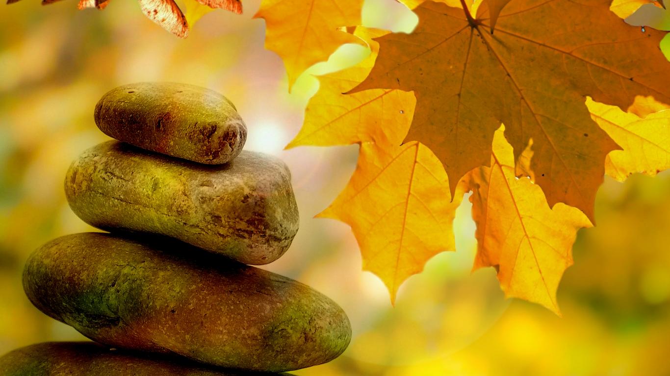 Обои Большие камни с желтыми осенними листьями