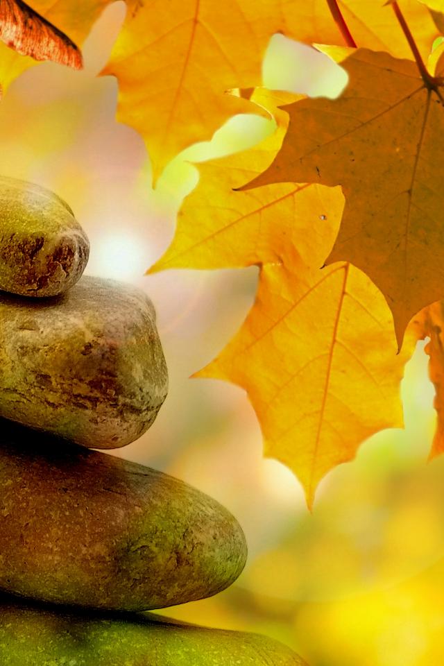Обои Большие камни с желтыми осенними листьями