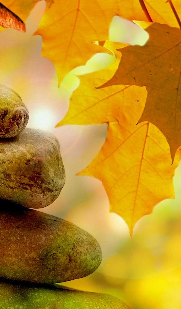 Обои Большие камни с желтыми осенними листьями