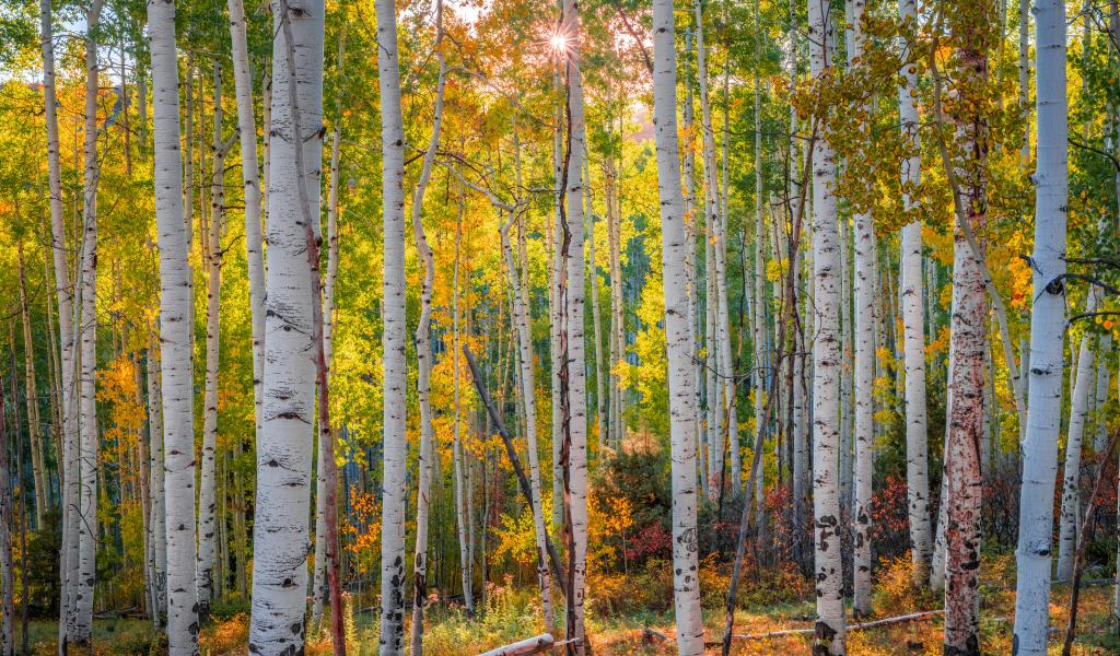 Обои Красивые белые березы осенью