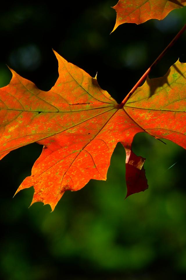 Обои Красный кленовый лист в лучах солнца