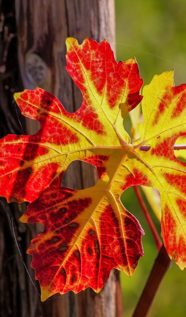 Обои Красный лист на виноградной лозе осенью