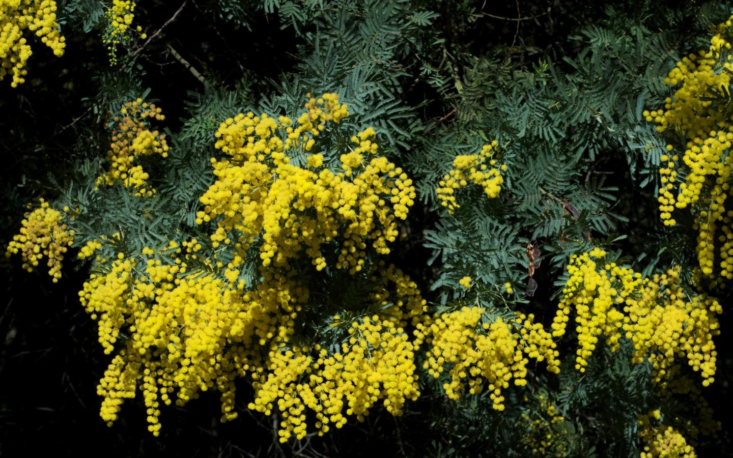 Обои Весенний кустарник цветущей желтой мимозы