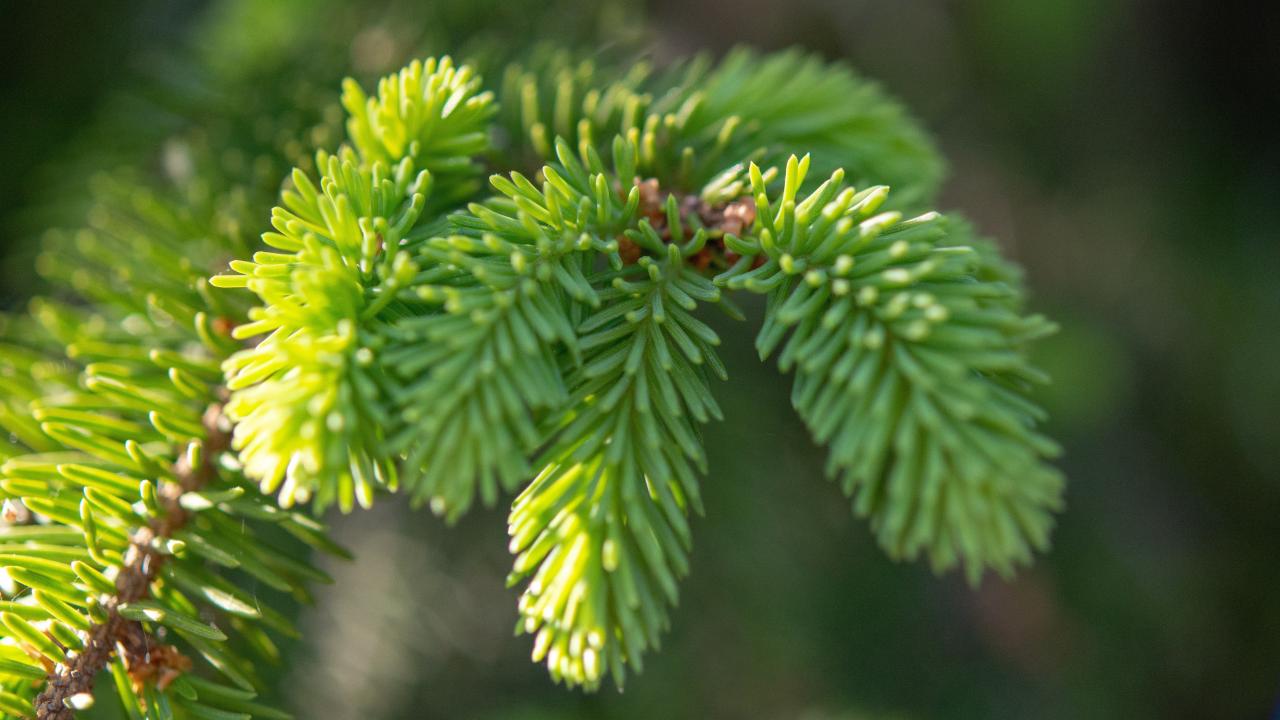 Обои Молодая зеленая ветка ели весной
