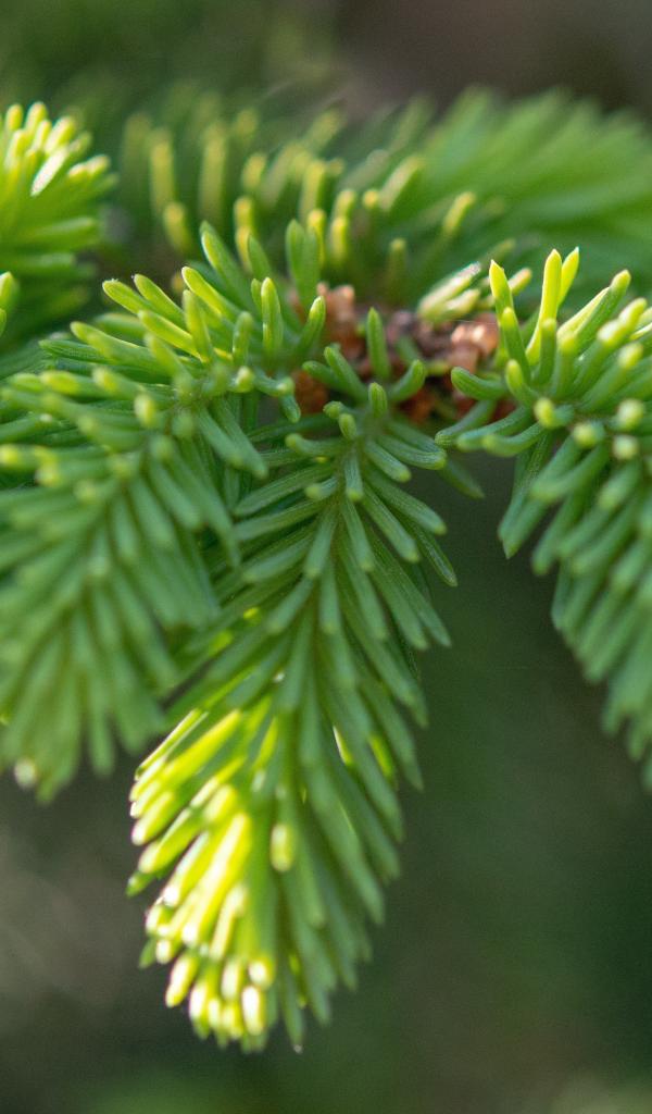 Обои Молодая зеленая ветка ели весной