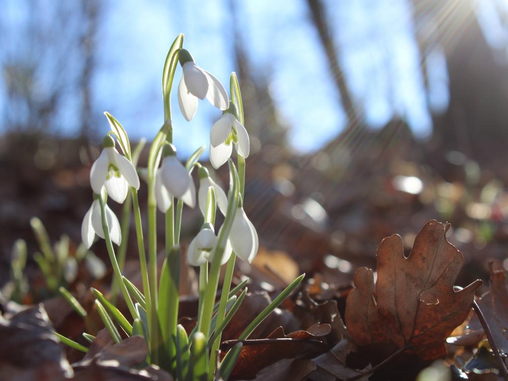 Обои Белые цветы подснежника в ярком весеннем солнце