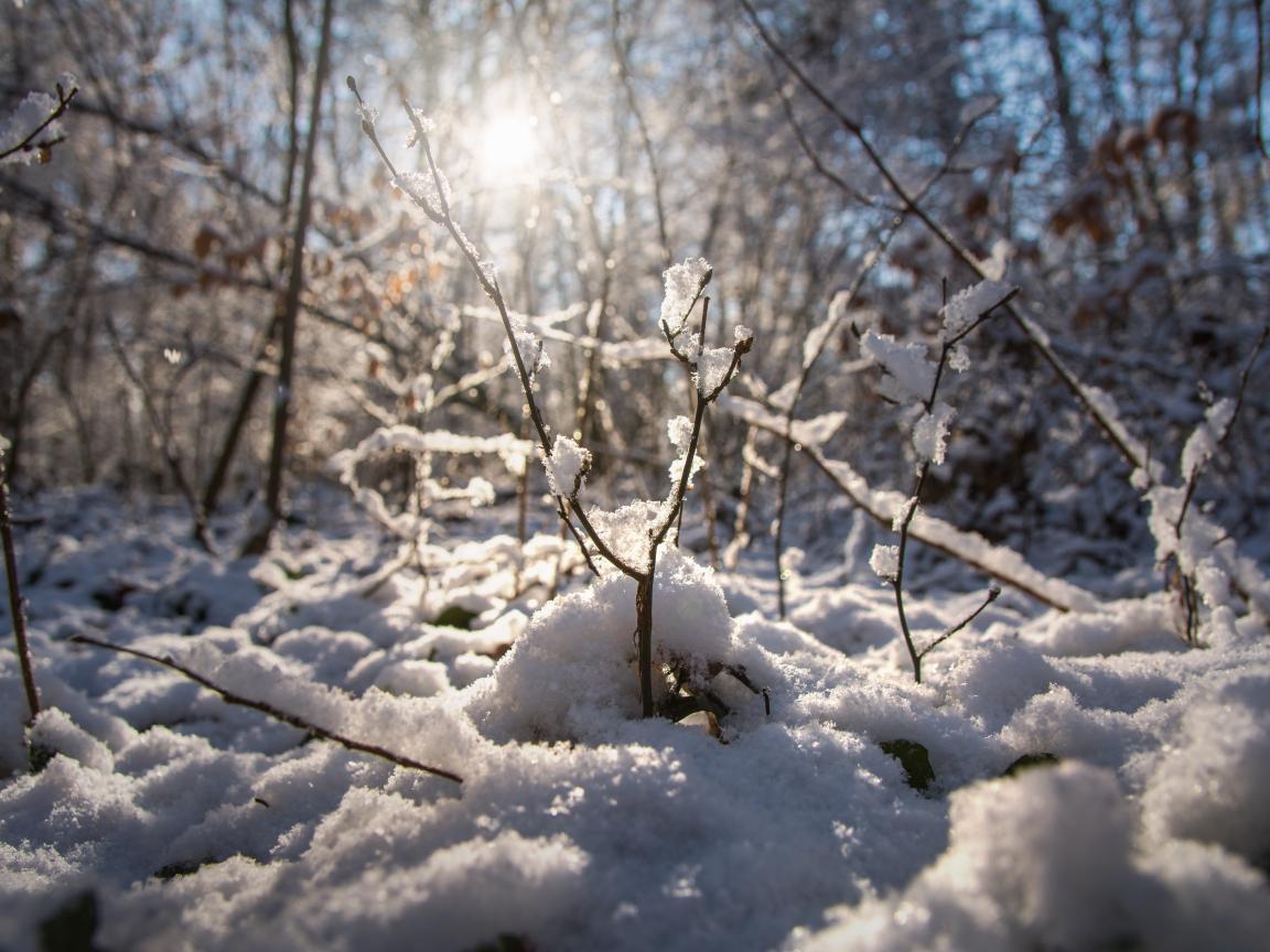 Обои Снег на ветках в лучах солнца весной