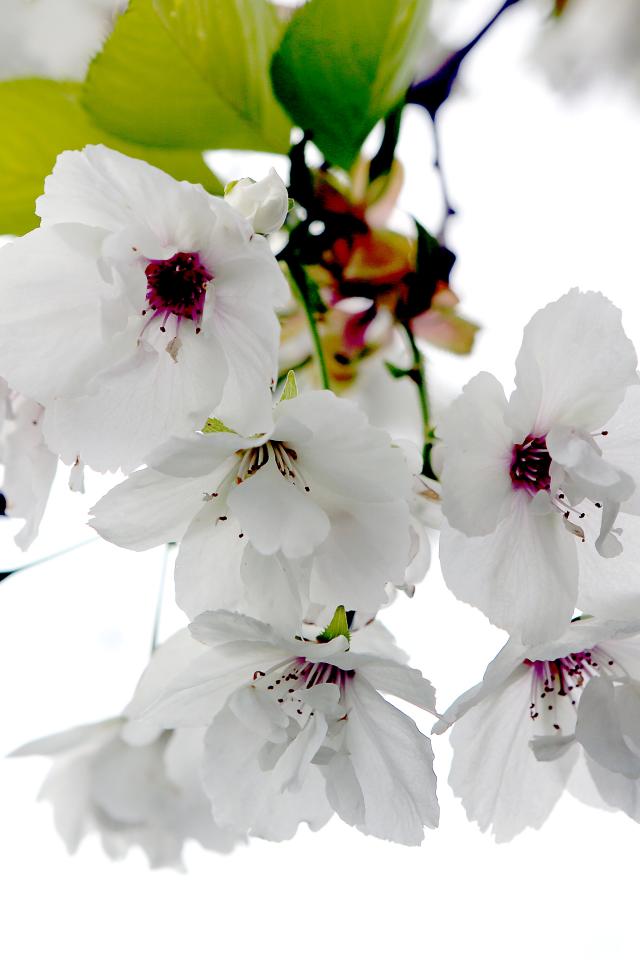 Обои Красивые крупные белые цветы черешни на ветке