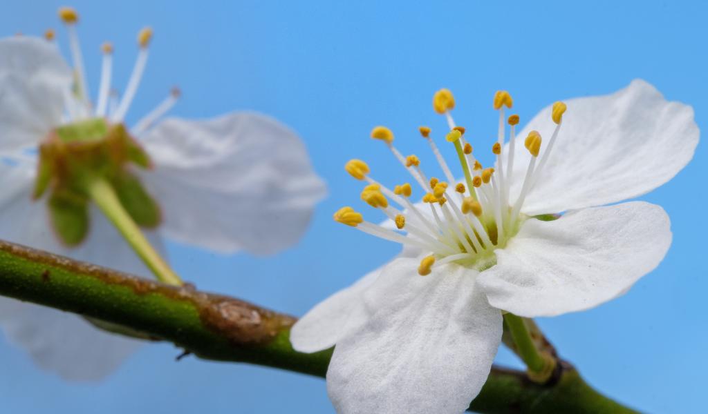 Обои Белый цветок вишни на дереве крупным планом