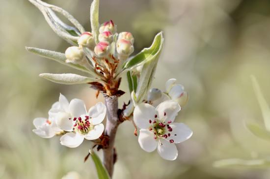 Обои Белые цветы на ветке груши с бутонами