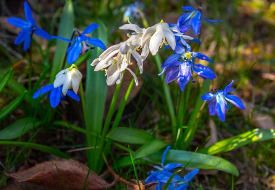 Обои Синие маленькие цветы пролесок на холодной земле весной